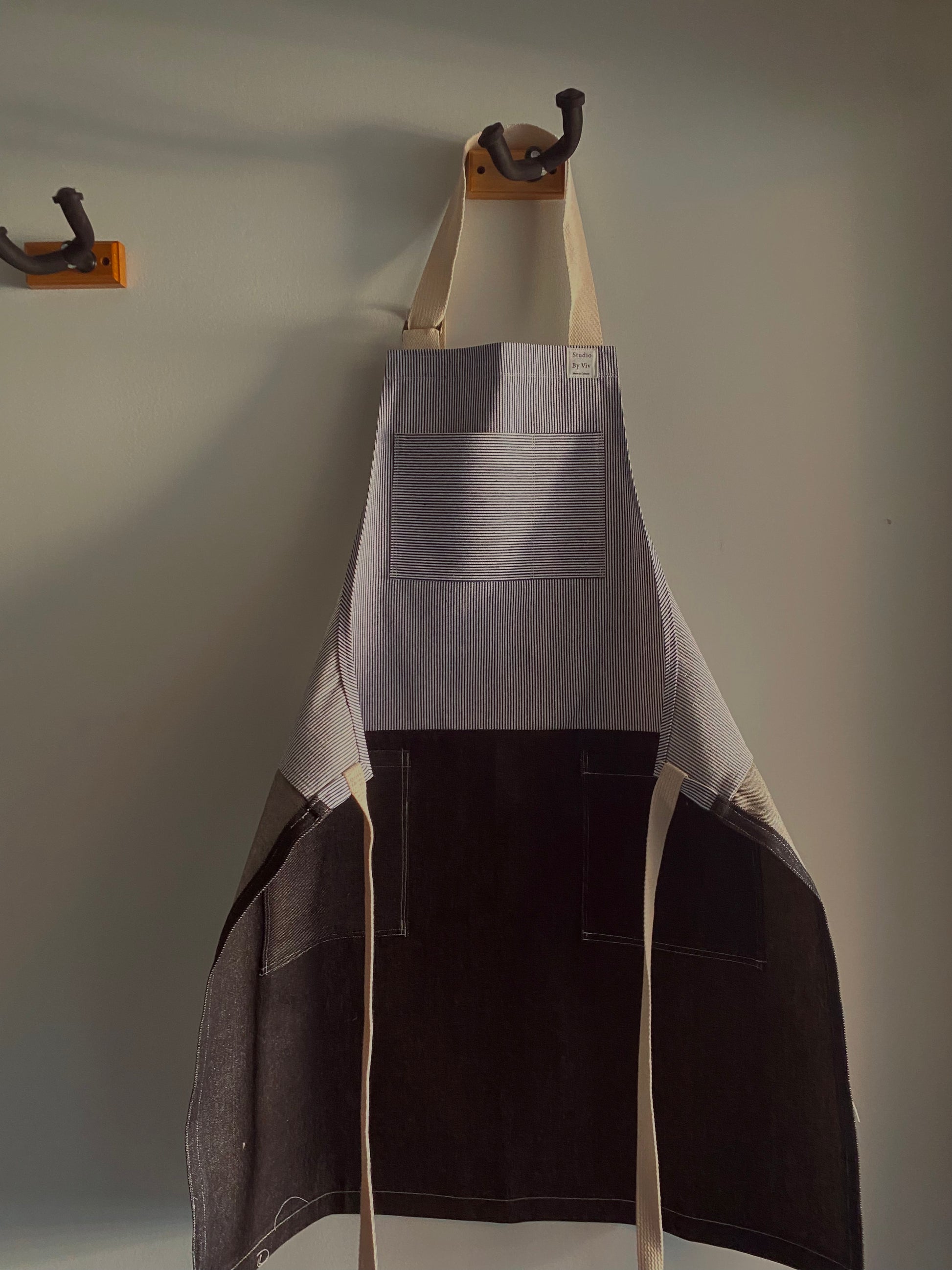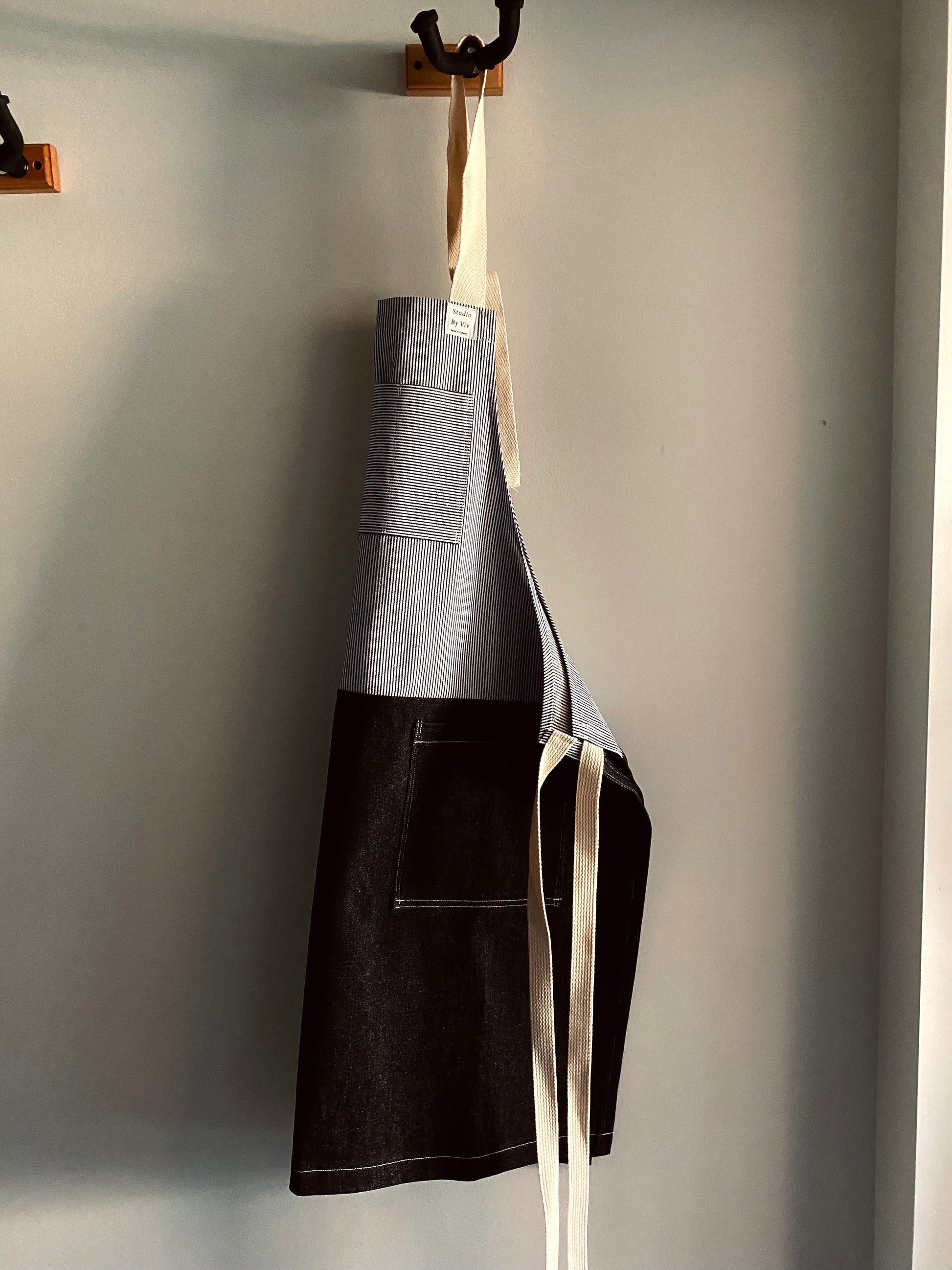Care Code: Wash with cold/warm water. Hang up to dry or low heat with dryer. Ironing : with low steam. (We recommend you ideally hand wash and hang to dry) Please treat apron like another jeans, it will get its own character over the times.